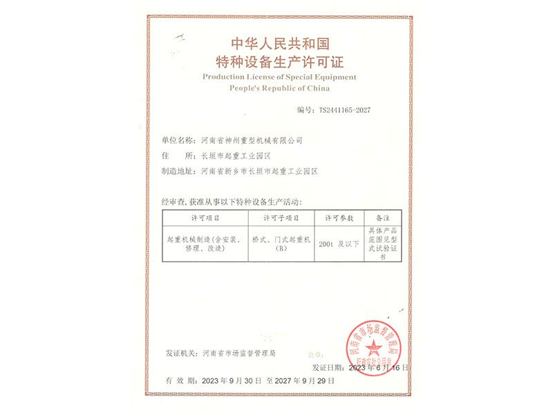 河南省神州重型機(jī)械有限公司,主要從事:“神重”牌單梁起重機(jī)、雙梁起重機(jī)、門式起重機(jī)、電動(dòng)葫蘆、防爆系列起重機(jī)、路橋門機(jī)、架橋機(jī)、高速鐵路提梁機(jī)、輪胎式起重機(jī)的制造與銷售。